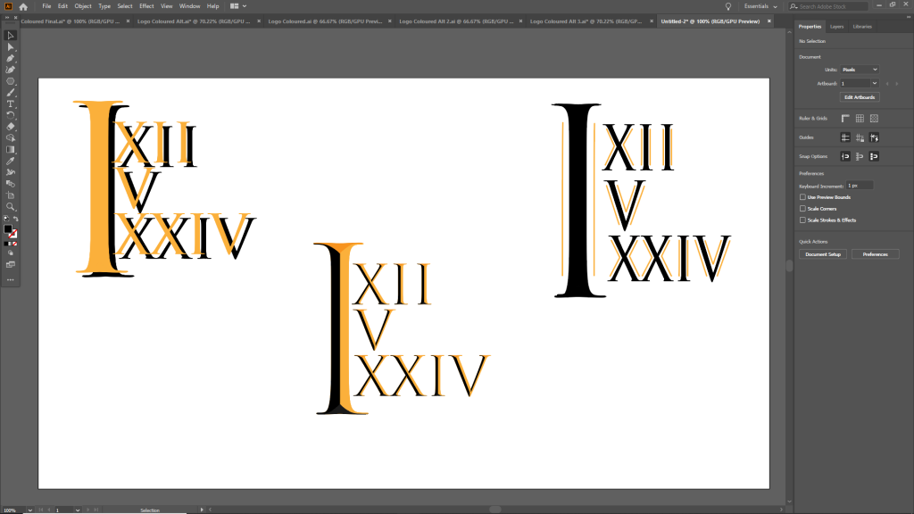 With the first design I duplicated the design and layered them to create a shadow affect. I then changed the colour to Golden yellow. I like this design as the shadow affect gives a sense of vastness and by extension grandness.