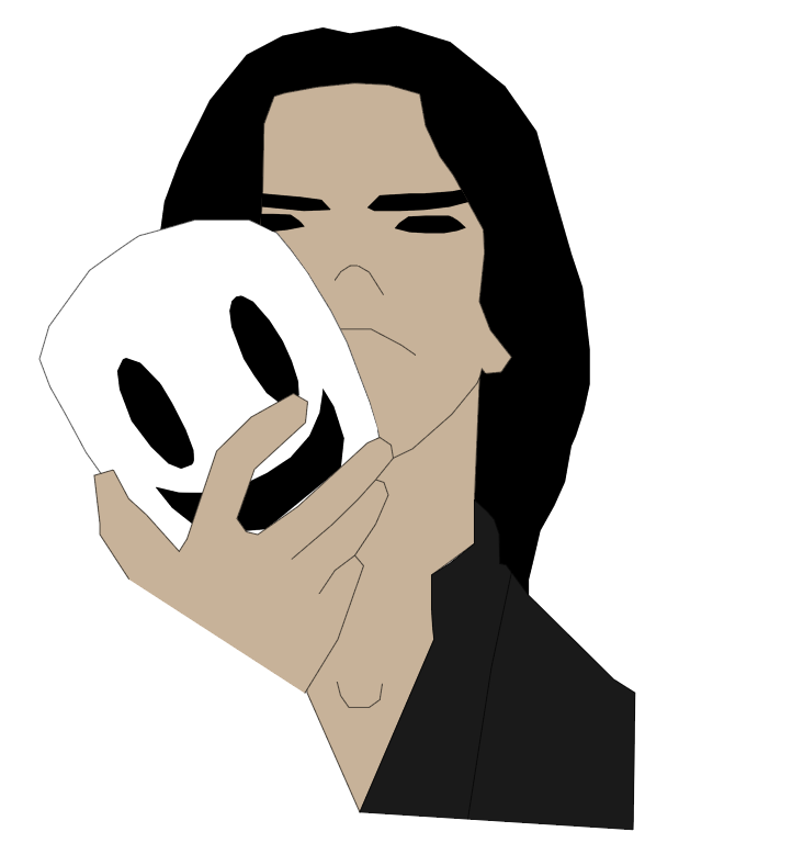 As the subject involves humans, I decided to use a depiction of a human as the centre of the poster. In illustrator I created a simple design using vectors. The design involves a man holding a mask up to his face. The central concept is portrayed through the combination of the mans face and the mask he is holding. His face is meant to portray evil through his frown and the mask is meant to portray good through the smile rendered on it. The purpose of this scene is for the person viewing the poster to infer that the man uses the mask to hide his true feelings.