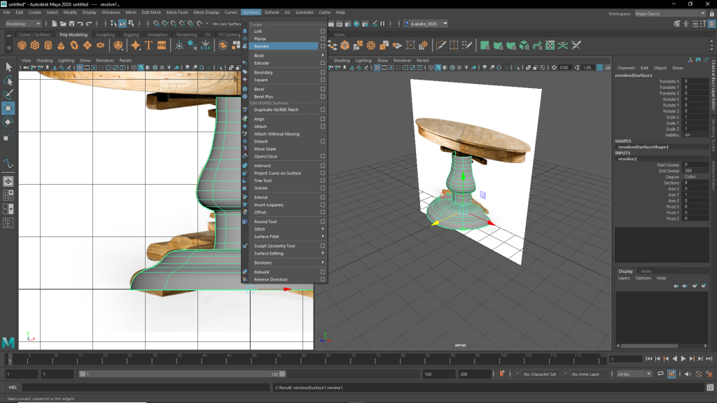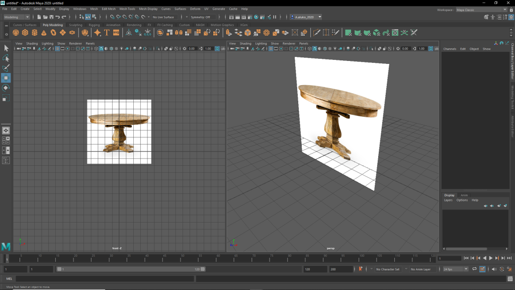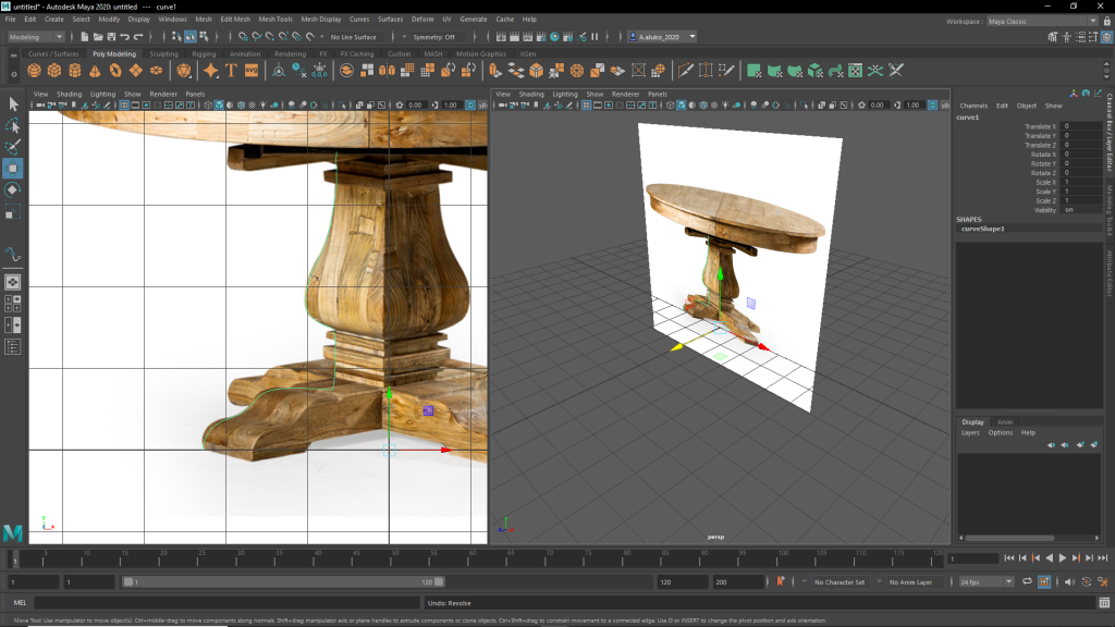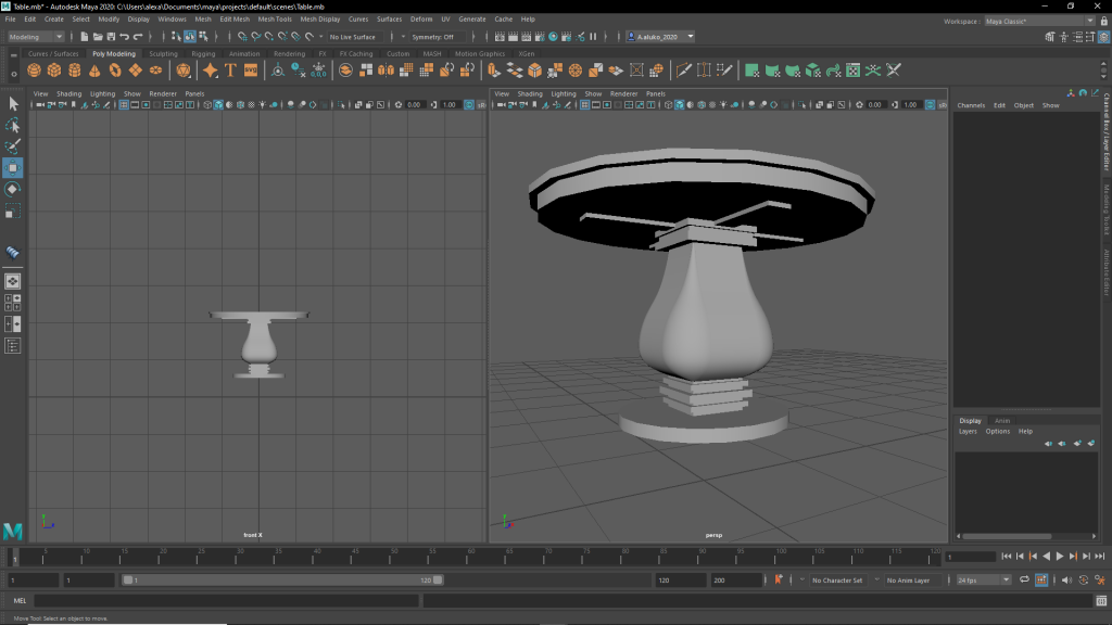 I started by getting a reference image and importing it into Maya.I then used the cv curve tool to create a curve around the table stand.I then attempted to use the revolve tool to create the base of the table however this wasn’t the result I wanted so I decided to go for a different approach.I decided to create a frame using the curves based on the original image.I then used the loft tool to attach two of the curve lines together. at first the face would be on the inside so I had to make sure I was selecting the lines in the correct order.I then repeated the process around the frame.The finished object looked like this.Before continuing I first made sure to remove the object from the frame.To finish off the bottom of the table I added a few more simple polygons.This was the table once I added the top.Afterwards I decided to add a bit more detail through more simple polygons. this would be the finished model for the table.
